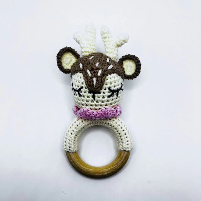 SAFE & NONE-TOXIC MATERIAL - The crochet rattle is handmade of natural cotton, which is soft and has no odor. The wooden ring is made of natural beech wood, BPA-free, non-toxic and smell-free. The cute animal appearance has always been liked by babies, and there is a bell inside the crochet animal, so shaking it will make a pleasant sound which can easily attract baby's attention. This help baby focus while nursing or stay happy with natural teething. The size of our rattle is very suitable for a baby to grasp and is very easy for on-the-go. In addition, you can rest assured that it is big enough that there is no risks of swallowing or choking. We package this item in cute cotton and linen bags to ensure the safety of the product during shipping.