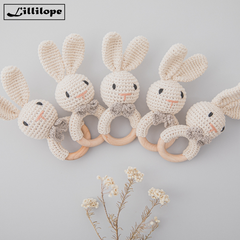 BPA Free Newborn Baby Crochet Wooden Rattle Ring Teething Nursing Soother Molar Educational Toys